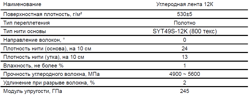 Однонаправленная тканая слабоуточная углеродная лента на основе волокна марки SYT45, поверхностной плотностью 200 г/м², предназначена для изготовления полимерных композиционных материалов на основе эпоксидных связующих.